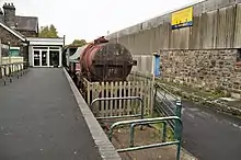 During the 1990s the track was lifted and the station became a public house. The former track bed was not to be built on, in case British Rail decided it wanted to rebuild the line. The ownership of the line was transferred to Devon County Council, who turned it into a cycle trail.[2] The owner of the public house 'The Puffing Billy' started to acquire rolling stock and a small diesel locomotive, and in 2008 the Tarka Valley Railway Group was formed.[2] In 2013 the railway gained planning approval to relay 300 yards (270 m) of track in the direction of Bideford. After the completion of the Phase 1 of the project, the railway is now in the planning stage for Phase 2 which would see the line extend to the first bridge over the River Torridge with the provision of a halt. [3]