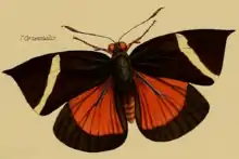 Adults have orange hindwings with a broad black border.[2] This genus is the only Oriental representative of the Castniidae. The three described species are virtually restricted to Sundaland, as the type species of Neocastnia is only known from the Tenasserim region of Burma, just north of Peninsular Malaysia. There is a fourth species, undescribed, with the upper-side entirely black, the forewing with an oblique white bar typical of the genus, and the narrowly falcate apex as in the type species. It is represented by a single specimen taken in Sumatra at Lebong Candis on a pass at about 400m; the hindwings below are mainly rusty orange.