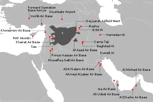 - ↑ "RAF Delivers Military Support to Iraq". Royal Air Force. Archived from the original on 19 October 2017. Retrieved 13 December 2015.