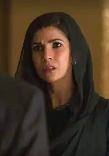 Dee Lockett of Slate described Tasneem as "a sharp, deceptive agent" and "the Pakistani version of Carrie".[24] She is shown to be "as smart and tenacious as Carrie",[43] but also "utterly ruthless".[44] Willa Paskin of Slate called her "an agent who was, at last, Carrie's equal",[45] though Den of Geek's David Crow wrote that Tasneem and the ISI are "far more functionally competent" than Carrie and the CIA.[46] Joshua Alston of The A.V. Club explained that Tasneem and her ISI cohorts "look less like stock villains and more like people who make tough decisions because of a patriotism that burns as hot as Carrie's".[28] After learning that Tasneem tampered with her medication, Carrie herself implies that she and Tasneem are not the same.[24] Lockett explained that the characters have "differing opinion about the ethics of war" and notes Tasneem's "seemingly unapologetic ruthlessness", which is "at times, even worse than Carrie's".[24] Slate noted halfway through the season that "smug" Tasneem has been "one step ahead of Carrie and the CIA since Saul's kidnapping",[47] later calling Tasneem the season's "real threat" and noting that she "emasculates most of her male colleagues".[24] She ultimately benefits from the political turbulence she helped unleash in Islamabad, rising to prominence in the political arena and speaking out against the US's presence in the region.[48][49][50] Alston wrote that Tasneem had become "hot shit back in Pakistan",[51] and Sonia Saraiya of Salon called the character "a bad guy [who] double-crossed everyone and drove Carrie and Saul out of Pakistan."[52] At the conclusion of season four, both IGN and Entertainment Weekly considered Tasneem triumphant over Carrie, but noted that neither an expected "big face-off between the two female agents" nor a "comeuppance" for Tasneem came to fruition.[48][53]