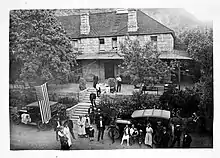 In 1904 Quilty had a sandstone hotel built. He hired Henry Arnold of Jamesburg to blast the rock and cut the blocks. He had other improvements added yearly so that by 1909 there was ample accommodation for 75 people, although a larger number were put up in tents. A U.S. Post Office was established with Mary Quilty as Postmaster at the resort on July 10, 1912.[15] By 1918, a stagecoach ran twice weekly from Salinas to the springs, bringing visitors from all over the country to the springs.[16] By 1932 his widow Helen was running two Pierce-Arrow stages daily from Salinas to the springs every day. One seated 9 and the other 11, and they also brought in groceries and supplies.