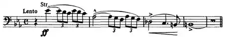 The 1849 version following a conventional overture layout, divided into a slow section ("Lament") and a fast one ("Triumph"). Even with this division, the entire work was actually a set of variations on a single melody—a folk hymn sung to Liszt by a gondolier in Venice in the late 1830s. Among the most significant revisions Liszt made was the addition of a middle section in the vein of a minuet. Calmer than either of the outer sections, it was intended to depict Tasso's more stable years in the employment of the d'Este family in Ferrara.[3] In a margin note Liszt informs the conductor that the orchestra "assumes a dual role" in this section, with strings playing one self-contained piece while woodwinds play another. This was very much in the manner of Italian composer Pietro Raimondi, whose contrapuntal mastery was such that he had written three oratorios—titled Joseph, Potiphar and Jacob—which could be performed either individually or combined. Liszt made a study of Raimondi's work but the Italian composer died before Liszt could meet him personally.[5]