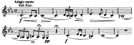 This work calls for piccolo, 2 flutes, 2 oboes, 2 clarinets in B♭, bass clarinet in B♭, 2 bassoons, 4 horns in B♭ and C, 4 trumpets in C, 2 tenor trombones, bass trombone, tuba, triangle, snare drum, cymbals, bass drum, harp, and strings.