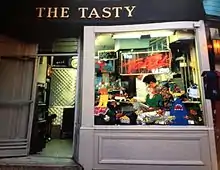 ![]() The Tasty, 1985. Behind the counter is chef Don Valcovic; on the right is Al Nidle, publisher of Street magazine at the time[1] | |
