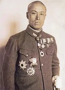 Tasuku Okada (岡田 資, Okada Tasuku, April 14, 1890 – September 17, 1949) was a Japanese officer during World War II. After the war he was put on trial during the Yokohama War Crimes Trials for ordering executions of captured American aircrew in 1945. Okada was found guilty, sentenced to death, and hanged in 1949. Okada took responsibility for ordering the execution of 38 captured U.S. POWs, after he considered them to be war criminals for the firebombings of Japan.[1][2]