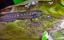 The peacock gudgeon or peacock goby (Tateurndina ocellicauda) is a tropical freshwater species of fish in the family Eleotridae that is endemic to the eastern part of Papua New Guinea.[3] It can be found in schools hovering over the substrate in rivers and ponds. This species can reach a length of 7.5 cm (3.0 in). It is currently the only known member of its genus.[4]
