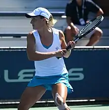 Tathiana Garbin (Italian pronunciation: [taˈtjaːna ɡarˈbin];[2][3] born 30 June 1977) is an Italian retired tennis player. She was best known for her upset of the defending champion and the reigning world No. 1 Justine Henin, in the second round of the 2004 French Open.[4] The winner of one singles and 11 doubles WTA Tour titles,[5] she reached her highest singles ranking of world No. 22 on 21 May 2007, and her highest doubles ranking of No. 25 on 27 August 2001.[5] Other high–ranked players she defeated include Jelena Dokić, Chanda Rubin, Flavia Pennetta, Agnieszka Radwańska, Nadia Petrova, Marion Bartoli, and Samantha Stosur.[4]