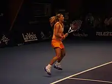 Tatiana Golovin (Russian: Татья́на Григóрьевна Головина́, tr. Tatyana Grigoryevna Golovina; born 25 January 1988) is a French professional tennis player. She won the 2004 French Open mixed-doubles event, partnering with Richard Gasquet, and reached the singles quarterfinals at the 2006 US Open, losing to the eventual champion Maria Sharapova. Her career-high singles ranking is world No. 12. In 2008, she was diagnosed with lower back inflammation and was forced to stop playing competitive tennis.[2]