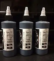 Ancient tattooing practices typically used dark pigments derived from vegetable and animal materials.[15] Alongside the development of more complex technology for tattooing, such as electric tattoo machines, tattoo artists developed inks with pigments derived from colorful minerals, both natural and synthetic.[15] People who continue to practice traditional tattooing methods and styles may make their own pigments or purchase manufactured ink. The history of tattoo ink development is connected to the history of pigment development.