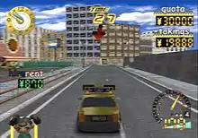The game's concept is similar to that of Sega's Crazy Taxi, in that the player, as a taxi driver, must pick up customers and deliver them to their destination within a fixed time limit. However, the execution differs from Sega's game - instead of competing to earn as much money as possible within a fixed time limit, the player is employed by Ogawara Gengorou, the boss of a local taxi firm, and given a quota which they must earn before the shift ends, with the ultimate goal of earning one million yen. Each shift, which can take place in the morning or evening, constitutes a "day" in-game, and the quota increases each day. After successfully completing a shift, the player may gain bonuses such as upgrades to the taxi's handling, acceleration or maximum speed or access to a previously restricted area. Additionally, customers may give additional challenges such as reaching the target without stopping or with transposed steering. However, unlike Crazy Taxi, the game does not feature any stunts or jumps, with the exception of nitro boosts which can be collected and used; it is also generally slower, particularly early in the game when the taxi's engine has not been upgraded.
