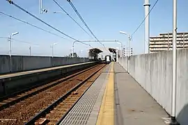 The station has two opposed elevated side platforms with the station building underneath. The station has automated ticket machines, Manaca automated turnstiles and it is unattended.