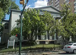 The Taylor–Mayo House, also known as the Mayo Memorial Church House, is a historic home located in Richmond, Virginia. It was built in 1845, and is a two-story, five-bay, Greek Revival style dwelling topped by a hipped roof. The front facade features a three-bay two-story Ionic order portico. The house was elaborately renovated during the 1880s.[3]