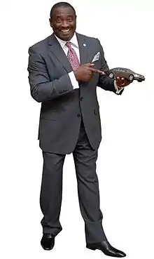 Tayo Ayeni is the Chairman/CEO of Skymit Motors Limited. In an interview he granted Lanre Alfred, Society Editor of ThisDay Newspapers, he said he was privy to know about automobile business and European car dealership during his study days in Italy. Returning to Nigeria after his education, his intended to “revolutionalize the way (automobile) business was being done back home in Nigeria.” He then founded a company he called Skymit Motors Limited, which, according to him, is a contraction of ‘Sky is the limit.’ Information on its website shows that the automobile company was incorporated in 1986 as a Private Limited Company with an initial start-up capital of Five Hundred Thousand Naira (N500,000.00), which has a yearly turnover level of five billion Naira today. Its sales are targeted towards “a selected group of Nigeria's corporate organizations and high-net-worth individuals who are in dire need of corporate, sleek but durable cars at affordable prices, packaged and tailored towards their financial status and personality.” Skymit became operation in January 1987 with only two cars; it now has offices/showrooms in Ikeja and Victoria Island (Lagos). He is also the Chairman of Affordable Cars Limited, a low and medium car sales and service outfit, which is run by his younger brother.[3][4][5][6][7] He also heads Space Ventures Ltd, which deals in photographic materials; he is chairman of Space Properties, a real estate firm; Moontrends Holdings, a project financing and management firm, and Limoserve among others.[2]