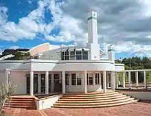Under the direction of the Buck and Morris families the Te Mata Estate winery complex was modernized and extended in the 1980s by New Zealand architect Sir Ian Athfield. An underground barrel hall, cuverie and office buildings were added in the region's prominent Art Deco and Spanish Mission architecture as deliberate influences.[6] Opposite the winery, the distinctive Coleraine House is a private residence that has gained much recognition as a significant work of New Zealand architecture.[7] In 1997 it appeared on the 80c postage stamp in a series celebrating New Zealand wines.[8]