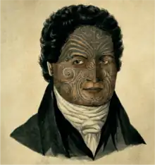 - ↑ Portrait of Te Pehi Kupe, with full tattoo on face and wearing European clothes