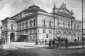 The history of the Teatro Petruzzelli of Bari begins when Onofrio and Antonio Petruzzelli, traders and ship builders from Bari,[1] presented the designs for the theatre drawn up by their brother-in-law, the engineer Angelo Bari Cicciomessere (then Messeni) to the city of Bari. The proposal for building the Petruzzelli was accepted and, on 29 January 1896, a contract was signed between the family and the city administration. Two years later, in October 1898, work began and it ended in 1903.