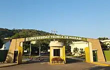 The Technical University of Manabí (UTM), is a public institution of higher education located in the city of Portoviejo, Manabí, Ecuador. It was founded on October 29, 1952, in the presidential government of Dr. José María Velasco Ibarra. Its three substantive functions are: scientific research, the academy and relationship with society; intervenes with quality in all spheres and sectors, both public and private, through the support of students, teachers and authorities. It offers undergraduate and postgraduate studies in various specialties and modalities.[5]