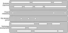 A technology roadmap is a flexible planning schedule to support strategic and long-range planning, by matching short-term and long-term goals with specific technology solutions.[1][2] It is a plan that applies to a new product or process and may include using technology forecasting or technology scouting to identify suitable emerging technologies.[3] It is a known technique to help manage the fuzzy front-end of innovation.[4] It is also expected that roadmapping techniques may help companies to survive in turbulent environments[1] and help them to plan in a more holistic way to include non-financial goals and drive towards a more sustainable development.[5] Here roadmaps can be combined with other corporate foresight methods to facilitate systemic change.[6]