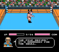 Tecmo World Wrestling is a Nintendo Entertainment System professional wrestling game for one or two players released in 1989 where the player can control one of ten fictional international professional wrestlers. This is the first wrestling game to feature a play-by-play announcer, the animated Tom Talker, although his speech was only text bubbles. The game's text, e.g. Tom Talker's commentary, was translated from the Japanese game almost directly, leading to instances of Engrish. For example the Northern Lights Suplex is called "Northern Right Suplex". The game was released in Japan under the name Gekitou Pro Wrestling!! Toukon Densetsu (激闘プロレス!! 闘魂伝説, Fierce Fighting Wrestling!! Legend of Fighting Spirit)