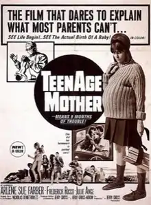 Teenage Mother (also known as The Hygiene Story) is a 1967 American exploitation film directed by Jerry Gross and starring Arlene Sue Farber.[1] It is about teenage pregnancy, hygiene and a graphic actualization of birth. It was billed as "The film that dares to explain what most parents can't."[1] It marked Fred Willard's film debut.