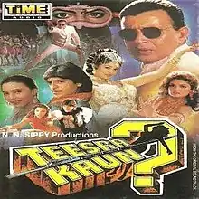 Teesra Kaun? is a 1994 Hindi language comedy action thriller film directed by Partho Ghosh.[1] It features Chunky Pandey, Mithun Chakraborty, Amol Palekar, Satish Shah, Rakesh Bedi. The film is a remake of the 1990 Malayalam film No.20 Madras Mail, directed by Joshiy and starring Mohanlal in the lead role.