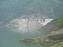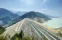 With a height of 260.5 m (855 ft) Tehri Dam is the tallest dam in India[1] and 12th tallest dam in the world. It is a multi-purpose rock and earth-fill embankment dam on the Bhagirathi River in New Tehri, Tehri Garhwal district in Uttarakhand, India. It is the primary dam of the THDC India Ltd. and the Tehri hydroelectric complex. Phase 1 was completed in 2006. The Tehri Dam withholds a reservoir for irrigation, municipal water supply and the generation of 1,000 megawatts (1,300,000 hp) of hydroelectricity. The dam's 1,000 MW variable-speed pumped-storage scheme is currently under construction with expected commissioning of first two units in 2023.[2]