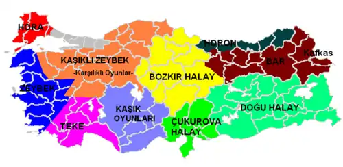 Teke zortlatmasi is a Turkish dance, with origins in Burdur, Isparta, Antalya, Denizli and Fethiye (Teke Region). The meter is 9/16.[1]