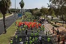 The Tel Aviv Marathon is a major marathon held annually in Tel Aviv, Israel, in February. Inaugurated in 1981, it was held annually until 1994.[1] In 2009, it was revived and has been taking place annually since, attracting about 40,000 runners in 2022. The race was not held in 2021 due to the COVID-19 pandemic and a digital event was held instead.