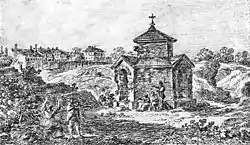The King accepted the classicist design of his royal architect, Jakub Kubicki,[1] for the Temple, which was to be built on the plan of a Greek cross. However, the Russian Imperial Army invaded Poland, making construction impossible, and three years later Poland disappeared from the map of Europe. The only survival of the planned Temple is a small ruined chapel in the Warsaw University Botanical Garden, containing the cornerstone.