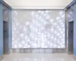Located in the elevator bays on the first six levels of Sidney & Lois Eskenazi Hospital, these Temporal Synapse feature walls consist of cast acrylic panels that feature a graphic pattern based upon cellular structures found within the body.[1][2] Through the use of a fisheye camera, video tracking technology tracks visitors’ positions in space, which, in turn, directs reciprocal “cells” to light up, visually representing the interaction between those waiting and their environment.[1][2] While each of the panels measure 149" in width, they range in height from 95"-107", depending on ceiling height.