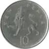 On 30 September 1992 a reduced-size version of the 10 pence coin was introduced. The older and larger version of the coin was withdrawn from circulation on 30 June 1993. The design remained unchanged.