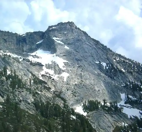 Tenaya Peak is a mountain in the Yosemite high country, rising above Tenaya Lake. Tenaya Peak is named after Chief Tenaya, who met the Mariposa Battalion near the shores of the Tenaya lake. In 1851, the Mariposa Battalion under Captain John Boling expelled Chief Tenaya and his people from what was to become Yosemite National Park.[4][5]