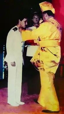 Tengku Dato' Setia Putra Al-Haj receiving DJMK from the late Sultan of Kelantan