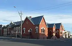 The School of Arts has a landmark presence in the Town. The building is constructed of four aesthetically significant styles: First is the original part consisting of a Hall and Reading Rooms built in 1876. This was followed by the building in 1884 in mixed Victorian Rustic Gothic/ Romanesque style. Third, in 1903 a Federation Free Classical Style was completed with the addition of a number 2 Hall to the east, and finally, the Billiard Room was completed in 1913, consisting of a Federation style design.[1][2]: 109