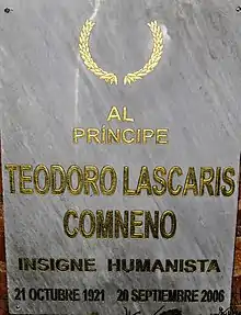 Teodoro Láscaris-Comneno (27 October 1921 – 20 September 2006), or just Teodoro Láscaris, was a Spanish Professor of Philosophy and the eldest son of Eugenio Láscaris, a Spanish lawyer who forged connections to the medieval Laskaris family, which had ruled the Byzantine Empire in Nicaea from 1204 to 1261. After Eugenio's death in 1962, Teodoro continued his father's pretensions, claiming to be the titular Emperor of Constantinople[1] as Theodore IX Lascaris Comnenus, as well as the Grand Master of the Constantinian Order of Saint George.[2][3]
