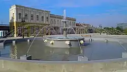 Pedestrian underground passage, with commercial facilities, was dug under Terazije in 1967, connecting Iguman's Palace with Hotel Moskva. Another underground passage, connecting Hotel Balkan and Palace Albanija, envisioned as an underground shopping mall, was finished in 1968.[6] Terazije Tunnel, for traffic, was opened on 4 December 1970.[51] On 12 December 1975, old Terazije Fountain was relocated from Topčider back to the square, and placed at its present location.[6][52] On 25 January 2020, the square and the surrounding area of 23 ha (57 acres) was placed under the state protection as the spatial cultural-historical unit.[1]