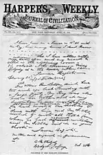 - ↑ The anonymous letter was reproduced in Harper's: Letter image Archived 2006-05-20 at the Wayback Machine