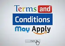 Terms and Conditions May Apply is a 2013 documentary film that addresses how corporations and the government utilize the information that users provide when agreeing to browse a website, install an application, or purchase goods online. In the film, director/narrator Cullen Hoback discusses the language employed in user-service agreements and how online service providers collect and use users' and customers' information.