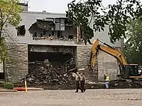 A citizens group launched an internet petition against Hy-Vee and filed a suit with Hennepin County District Court on August 23 requesting that the demolition be halted.[31] After the group's request was denied on September 19,[32][33] an appeal was filed on September 23 with the Minnesota Court of Appeals asking that the court issue an emergency injunction to prevent the theater from being demolished.[34] However, a demolition permit was obtained on Friday, September 23 and a crew began demolishing the theater the next day before the court could hear the case.[35] A temporary restraining order was granted the same day by a Hennepin County judge and the demolition work was ordered to halt until September 27.[36] On September 26, a judge's ruling required the citizens group to post a $2.8 million bond to the property owner and a $3.5 million bond to the city's Economic Development Authority by September 30.[37][38]