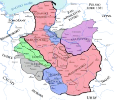 - ↑ Jerzy Wyrozumski, Historia Polski do roku 1505 (History of Poland until 1505), Państwowe Wydawnictwo Naukowe (Polish Scientific Publishers PWN), Warszawa 1986, ISBN 83-01-03732-6, pp. 129–141, 154–155