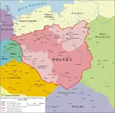 - ↑ Atlas historyczny Polski (Atlas of Polish History), 14th edition, ISBN 83-7000-016-9, PPWK Warszawa–Wrocław 1998, p. 5