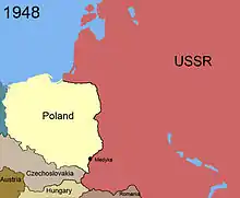 Poland and the USSR: Umowa graniczna pomiędzy Polską a ZSRR z 16 sierpnia 1945 roku on Wikisource - ↑ John B. Allcock. Border and territorial disputes. Longman Current Affairs. 1992. p. 148.