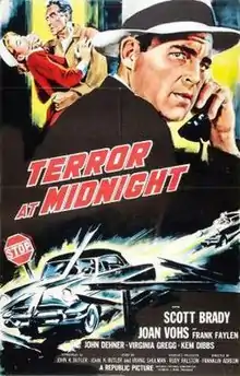 Terror at Midnight is a 1956 American film noir crime film directed by Franklin Adreon and starring Scott Brady, Joan Vohs and Frank Faylen.[1]