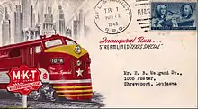 The Texas Special was a named passenger train operated jointly by the Missouri–Kansas–Texas Railroad (also known as the MKT or the Katy) and the St. Louis–San Francisco Railway (the Frisco). It was the flagship of both these lines, operating between St. Louis, Missouri, and San Antonio, Texas, from 1915 until 1959, after which time the Katy changed the northern destination from St Louis to Kansas City after the Frisco discontinued service from St. Louis.