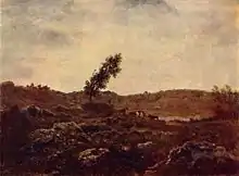 He had exhibited six works in the Salons of 1831, 1833, 1834 and 1835, but in 1836 his great work Paysage du Jura [La descente des vaches] was rejected by the Salon jury. He sent a total of eight further works to the Salon between 1836 and 1841; and yet none of them were accepted. Thereafter, he ceased sending work to the Salon until 1849, when all three of his submissions were accepted. He was not without champions in the press, and with the title of "le grand refusé" he became known through the writings of his friend Théophile Thoré, the critic who afterwards resided in England and wrote using the name Burger.[1]