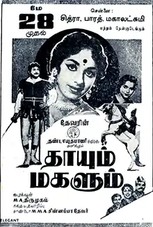 Thaayum Magalum (transl. Mother and Daughter) is a 1965 Indian Tamil-language historical drama film directed by M. A. Thirumugam and produced by Sandow M. M. A. Chinnappa Thevar.[1] The film stars S. A. Ashokan, Adhithan and K. R. Vijaya. It was released on 28 May 1965.[2]