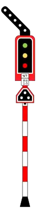 ![]() | Green | Home / Starter | Clear | Proceed on straight route, next signal at Yellow or Green |