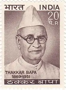 Amritlal Vithaldas Thakkar, popularly known as Thakkar Bapa (29 November 1869 – 20 January 1951) was an Indian social worker who worked for upliftment of tribal people in what is now Gujarat state in India. He became a member of the Servants of India Society in 1914 founded by Gopal Krishna Gokhale in 1905.[1] In 1922, he founded the Bhil Seva Mandal. Later, he became the general secretary of the Harijan Sevak Sangh founded by Mahatma Gandhi in 1932 .[2] The Bharatiya Adimjati Sevak Sangh was founded on 24 October 1948 on his initiative.[3] When Indian constitution was in process, Kenvi visited the most remote and difficult parts of India and conducted investigations into the situation of tribal and Harijan people. He was appointed the chairman of "Excluded and Partially Excluded Areas (Other than Assam), a sub committee of the constituent assembly. Mahatma Gandhi would call him 'bapa'. In one of his appeals in 1939 Mahatma Gandhi called him "Father of Harijans".