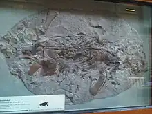 A replica of the holotype specimen, replica catalogued as LDUCZ-X227, has been in the collection of the Grant Museum of Zoology and Comparative Anatomy in London, England since 1890 after being catalogued by Ray Lankester, and it is a cast of a specimen created in 1862 by Henry Augustus Ward.[6] The original fossil, catalogued as NHMUK 2018 and also bought by Hawkins in the 1830s, can be seen on display at the Natural History Museum, also in London, England.
