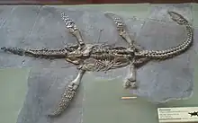 - ↑ Roger B. J. Benson; Mark Evans; Patrick S. Druckenmiller (2012). "High Diversity, Low Disparity and Small Body Size in Plesiosaurs (Reptilia, Sauropterygia) from the Triassic–Jurassic Boundary". PLOS ONE. 7 (3): e31838. Bibcode:2012PLoSO...731838B. doi:10.1371/journal.pone.0031838. PMC 3306369. PMID 22438869.